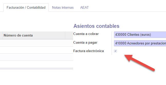 Si lo que quieres es hacer una factura electrónica a un organismo público o similar, tendrás que indicar la oficina gestora, pagadora, etc... para eso tienes que activar las opciones extendidas de contabilidad y volver a la ficha del cliente y ahora verás que magicamente en la pestaña Facturación/Contabilidad te aparece la opción de Factura Electrónica que al marcarla te mostrarará más abajo a la izquierda los campos para poder poner esa información.